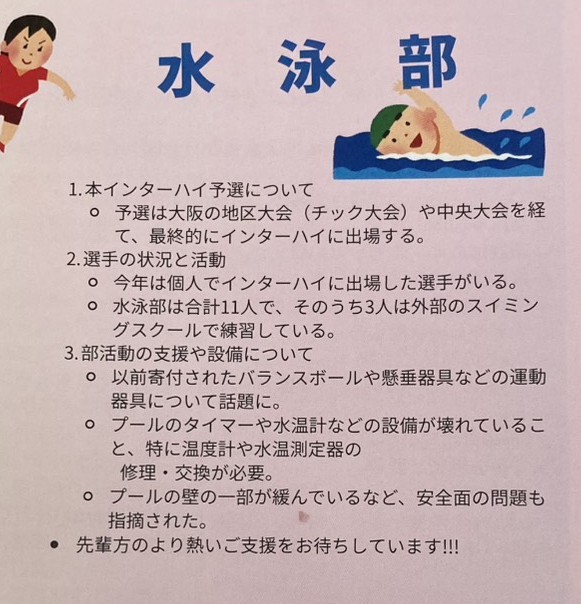 現水泳部部長は79期生、寄付金は半世紀越しに29期元部長から