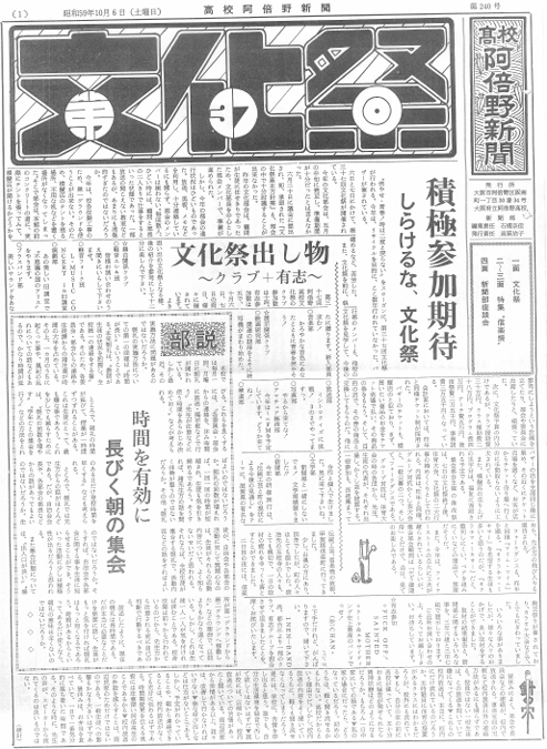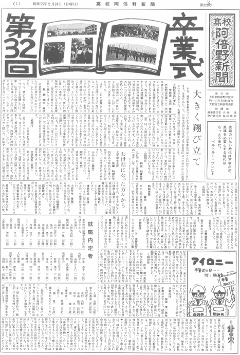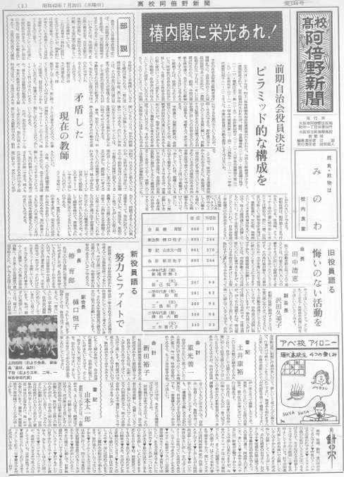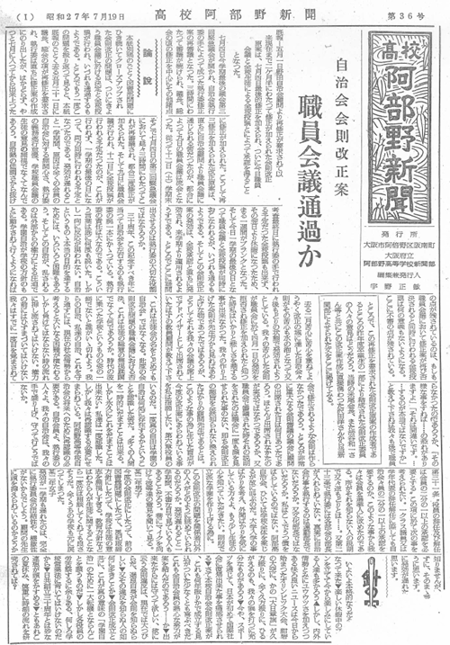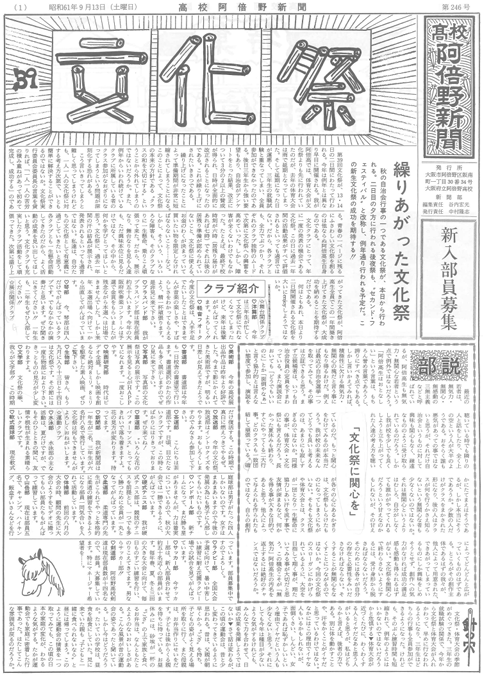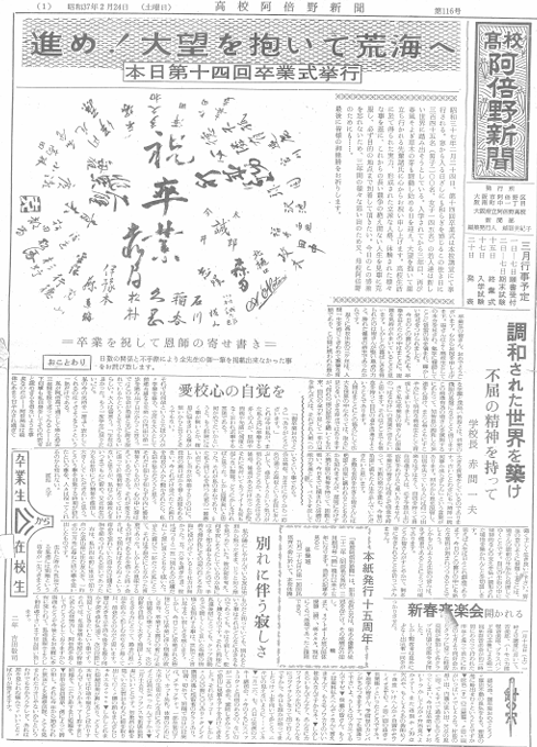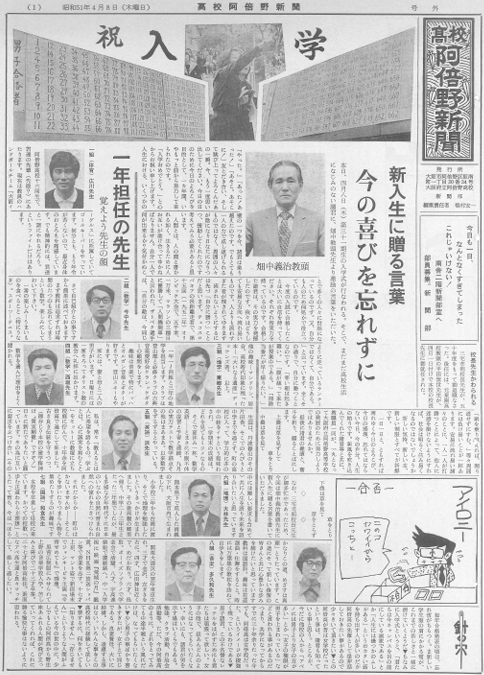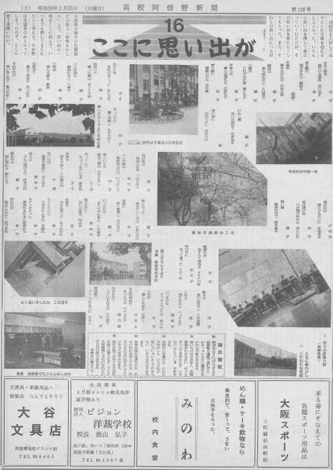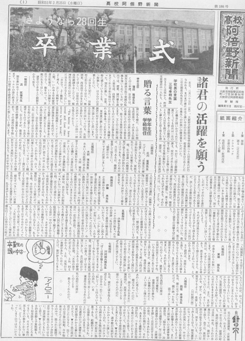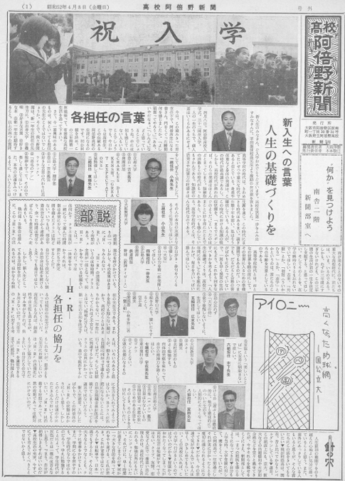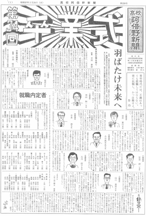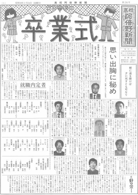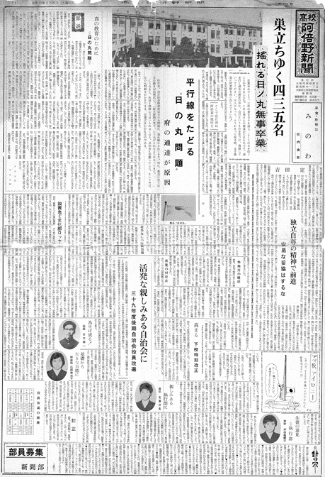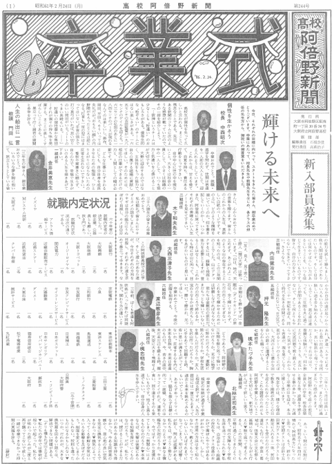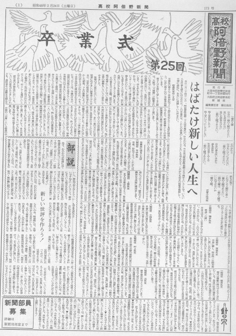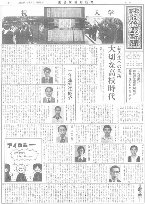 【高校阿倍野新聞電子版作業に関わった新聞部OB OG】 28期)正井昭夫、勝信一郎、正井(畑中)和子 29期)川﨑眞、河嶋(西本)友子 30期)橋村宏一、岡本共右 31期)越石(大森)伸樹、飯田(三谷)小百合 33期)柴田晴美、雑賀重則 35期)永野(市川)恵美 38期)石橋奈佳、岩谷(石川)真理子
