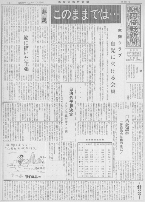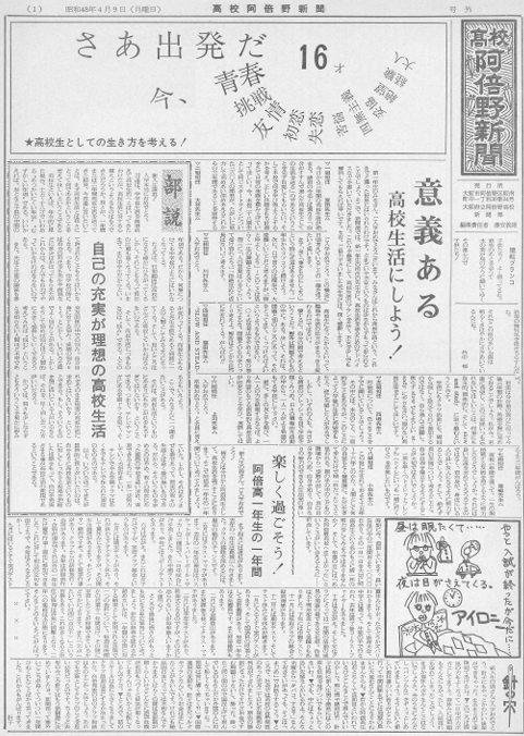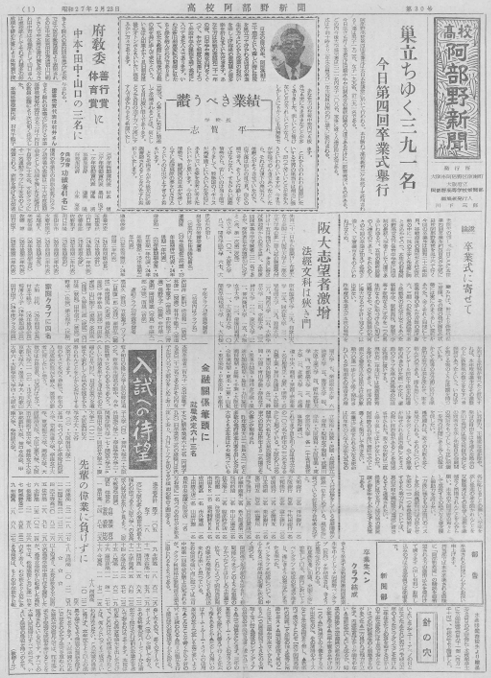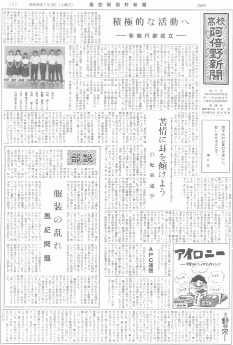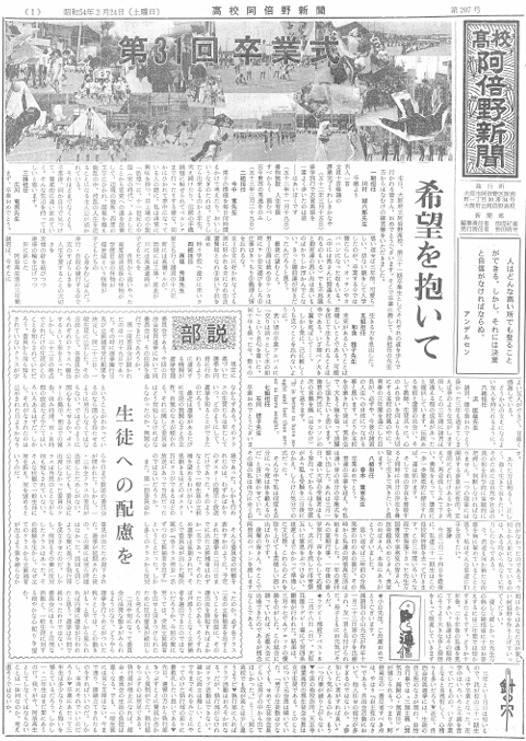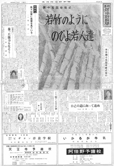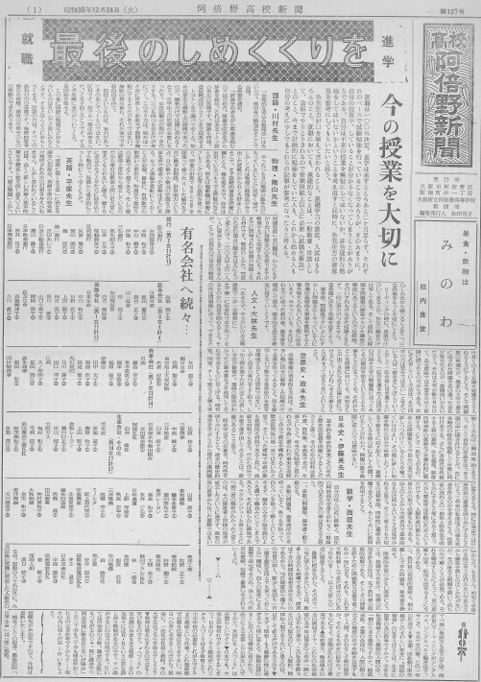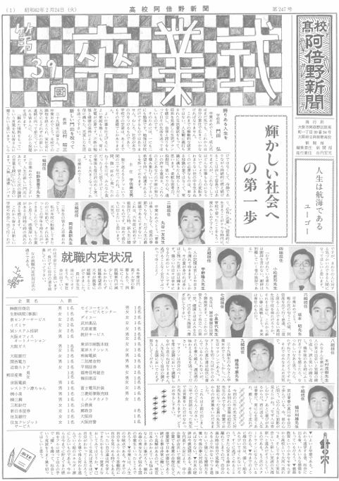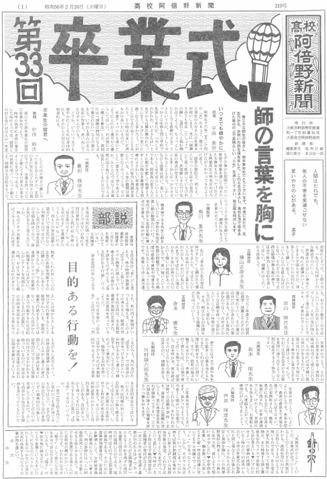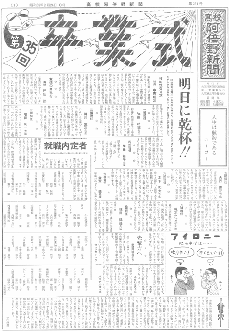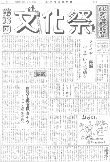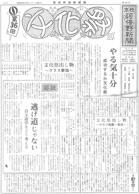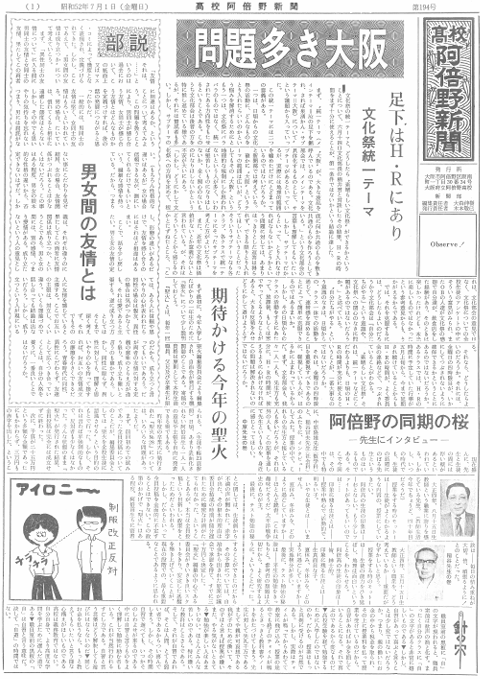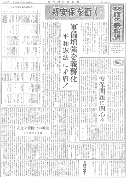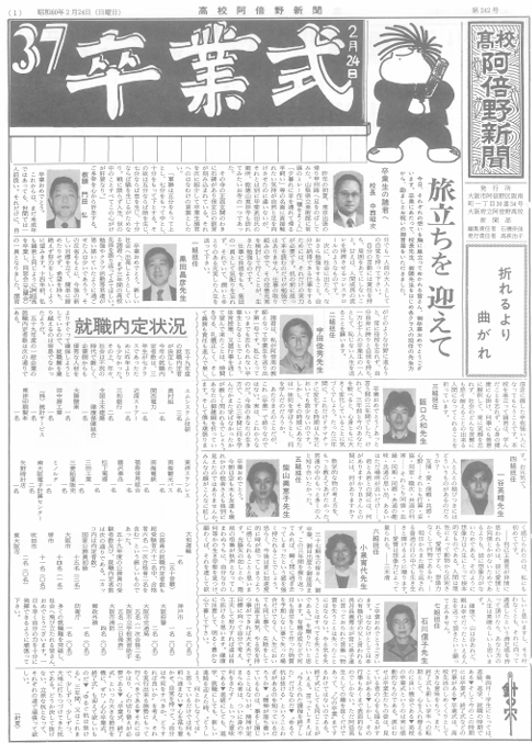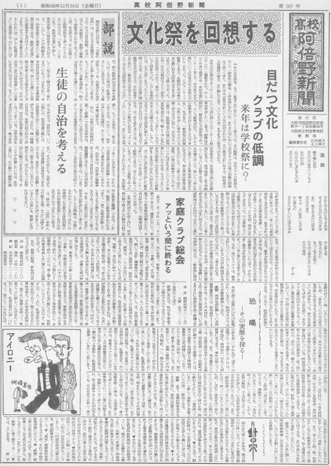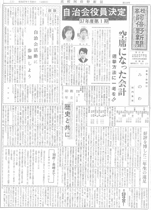 【高校阿倍野新聞電子版作業に関わった新聞部OB OG】 28期)正井昭夫、勝信一郎、正井(畑中)和子 29期)川﨑眞、河嶋(西本)友子 30期)橋村宏一、岡本共右 31期)越石(大森)伸樹、飯田(三谷)小百合 33期)柴田晴美、雑賀重則 35期)永野(市川)恵美 38期)石橋奈佳、岩谷(石川)真理子