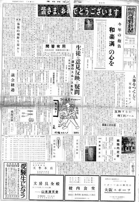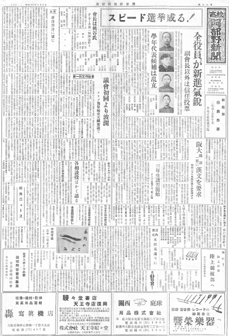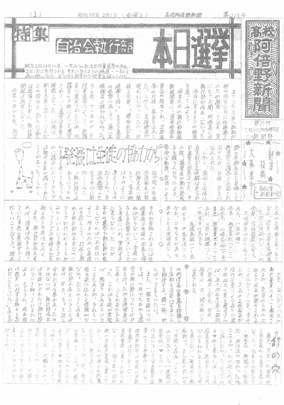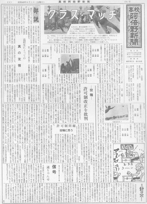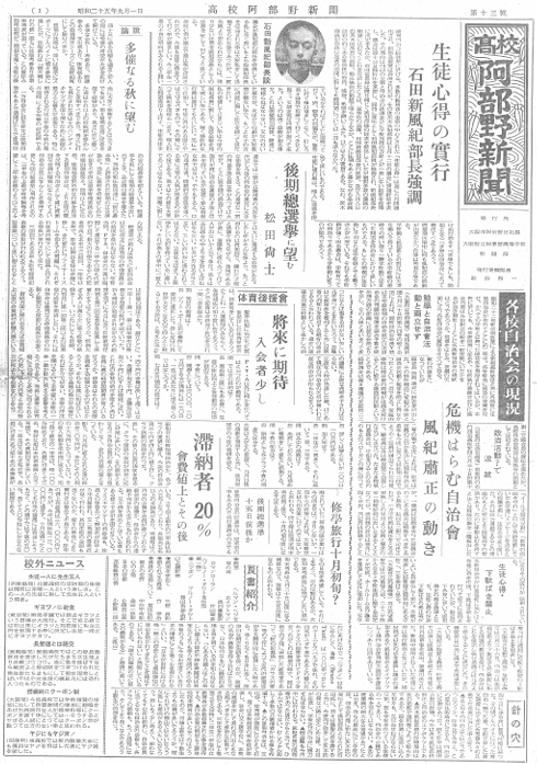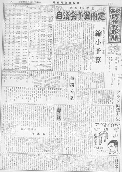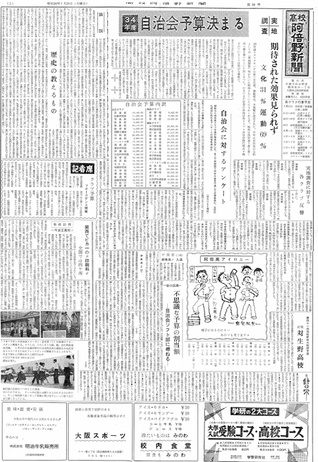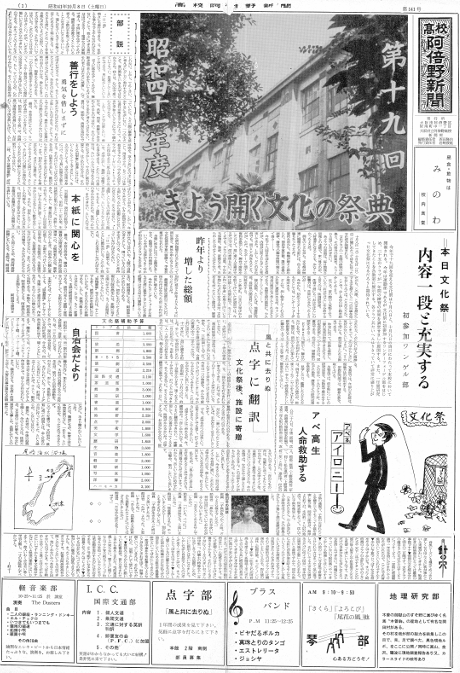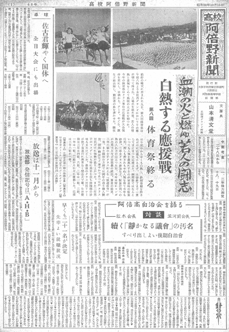 早速、飯田が江後さんと確認したところ、阿倍野高校創立100周年で改修 された芝蘭会館に、部室の消滅と新聞部自体の休(廃)部によって破棄された と思われていた高校阿倍野新聞が大量に保管されていたのです。