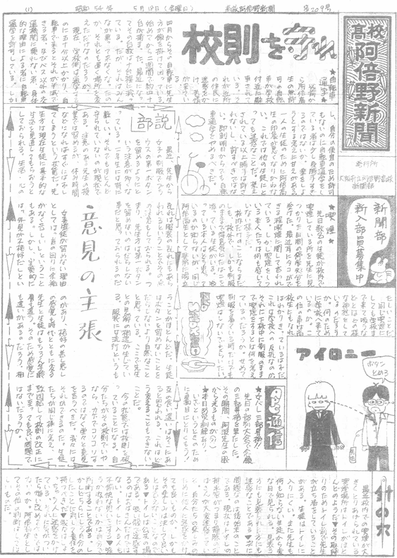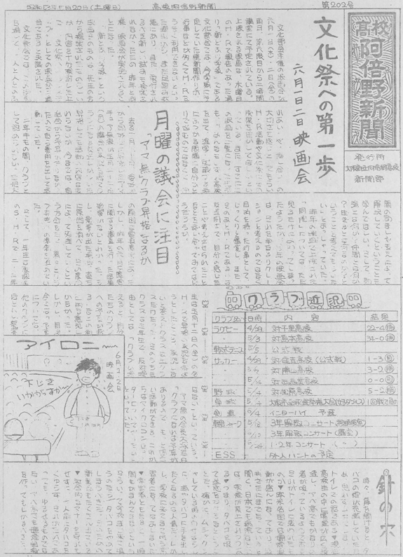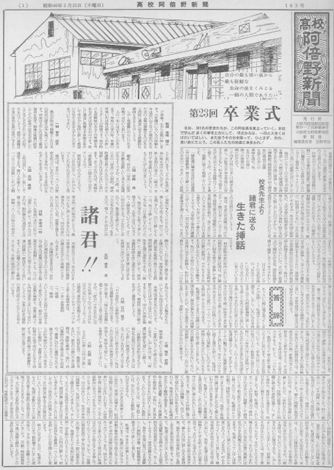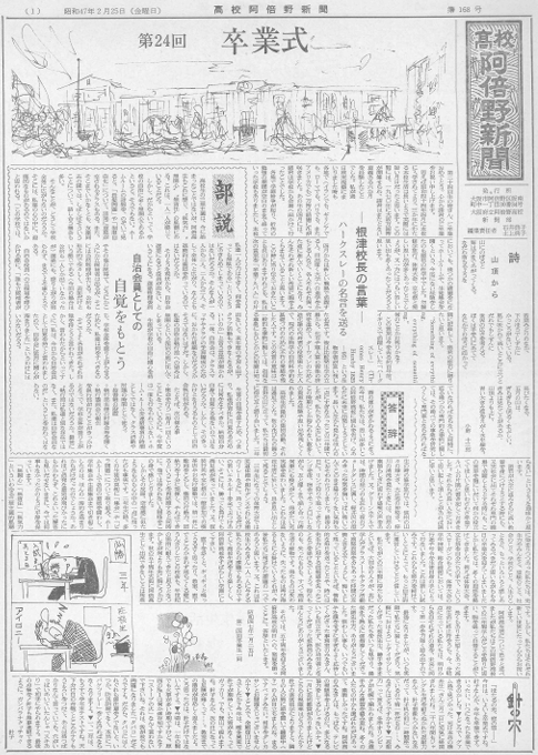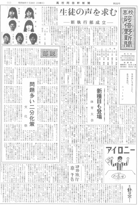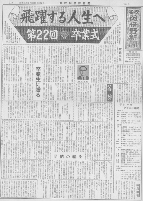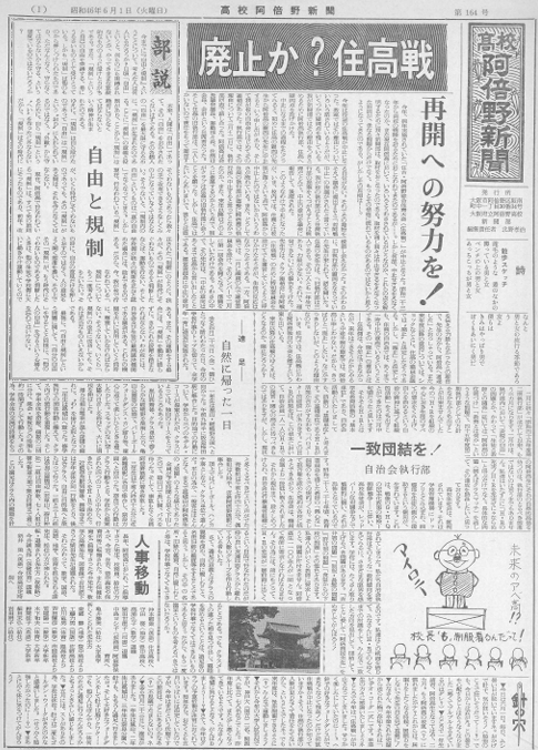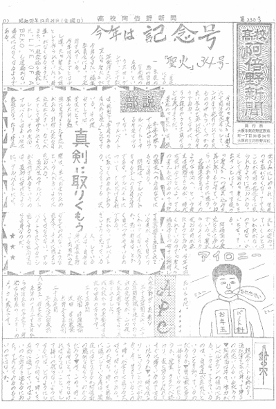 31期の卒業生で芝蘭会( 同窓会)の役員だった江後利幸さんから、同期で 新聞部OGの飯田(旧姓三谷)小百合に「高校阿倍野新聞が同窓会館に保管され ている」との一報でした。令和4(2022)年9月1日のことです。